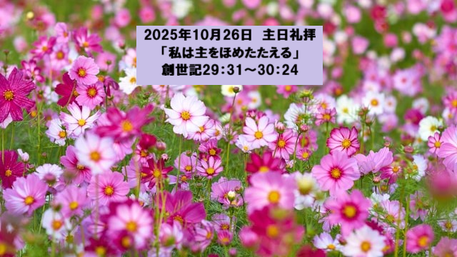 2025年10月26日主日礼拝 2025 10/26 礼拝メッセージ 2025年10月26日 礼拝説教の録画はこちら「私は主をほめたたえよう」創世記29章31節~30章24節説教者:齋藤千恵子 礼拝メッセージ よかったらシェアしてね! URLをコピーしました! URLをコピーしました! 2025年10月19日主日礼拝 2025年11月2日主日礼拝 関連記事 2025年11月2日主日礼拝 2025年11月2日 2025年10月19日主日礼拝 2025年10月19日 2025年10月12日主日礼拝 2025年10月12日 2025年10月5日主日礼拝 2025年10月5日 2025年9月28日主日礼拝 2025年9月29日 2025年9月21日主日礼拝 2025年9月21日 2025年9月14日主日礼拝 2025年9月14日 2025年9月7日主日礼拝 2025年9月7日